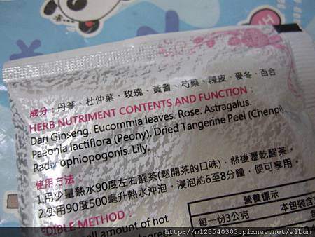成份裡有丹參.杜仲葉.玫瑰.黃耆.芍藥.陳皮.麥冬及百合